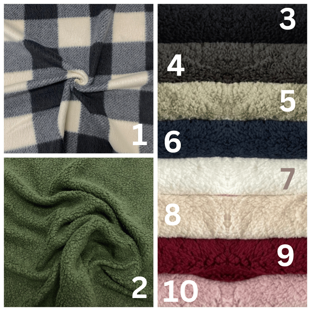 Handmade to order. Reversible Snood available in Fleece/ Sherpa options. Images detailing options